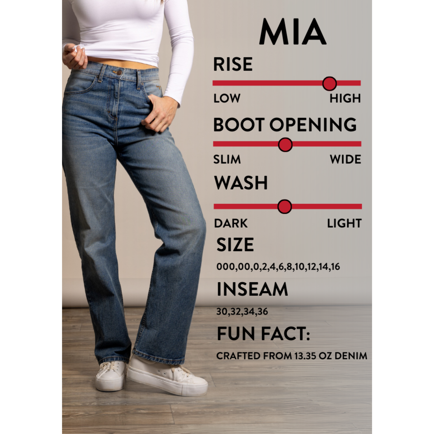 High-rise, loose fitting straight leg, featuring a boot size opening.